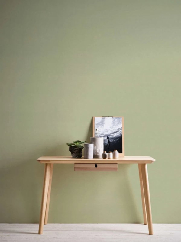 Een vriendelijke, natuurlijke basiskleur die warmte en frisheid moeiteloos combineert — perfect voor rustige interieurs met een levendig randje.