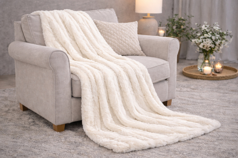 Kleed/Plaid VKW 'Blush' Ivory 150x200cm
